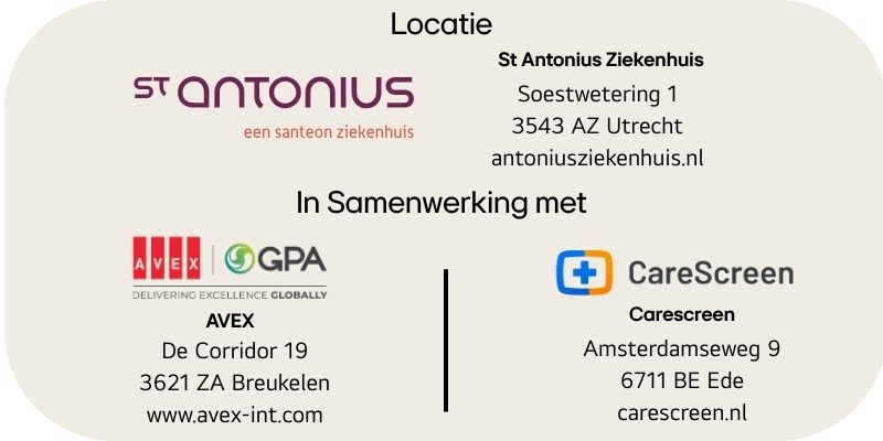 Het St. Antonius Ziekenhuis telt drie locaties, waaronder de vestiging in Utrecht. Dit is een topklinisch ziekenhuis met ruim vijfhonderd bedden. Met als doel de patiĂ«ntervaring een positieve impuls te geven, wilde het ziekenhuis een slim, geĂŻntegreerd tv-systeem introduceren in combinatie met verschillende andere functionaliteiten. âAls je in een ziekenhuis bent, verwacht je dat alles met één druk op de knop werkt: dat de televisie het doet, je praktische informatie eenvoudig kunt vinden en dat dit laagdrempelig isâ, vertelt Wenny Braam, projectmanager Facilitaire Concepten & Innovatie van het St. Antoniusziekenhuis. Zo ontstond de behoefte aan een platform dat bezoekers en patiĂ«nten gemakkelijk kunnen bedienen en dat ook andere toepassingen biedt. Zoals de mogelijkheid om bezoektijden en medicatiemomenten te raadplegen of afspraken met artsen te plannen. Om dat in de toekomst mogelijk te kunnen maken, bracht system integrator AVEX een aantal partners bij elkaar. Zo deed zij een beroep op CareScreen - een softwareontwikkelaar die zich richt op het ondersteunen van zorgprocessen en het verbeteren van de patiĂ«ntbeleving. â en LG, als fabrikant van de Smart Tvâs die uitermate geschikt zijn voor 24/7 gebruik. âSamen wilden we een oplossing ontwikkelen die naadloos aansluit bij de wensen van het ziekenhuisâ, zegt Dennis van Veen, Accountmanager Healthcare van AVEX. âWe hebben hierbij goed gekeken hoe we specifieke zorgprocessen kunnen ondersteunen. Met als doel het patiĂ«nten gemakkelijk te maken en hen zo goed mogelijk in de watten te leggenâ, voegt CornĂ© Eshuis, adviseur en implementatiespecialist van CareScreen, hieraan toe.